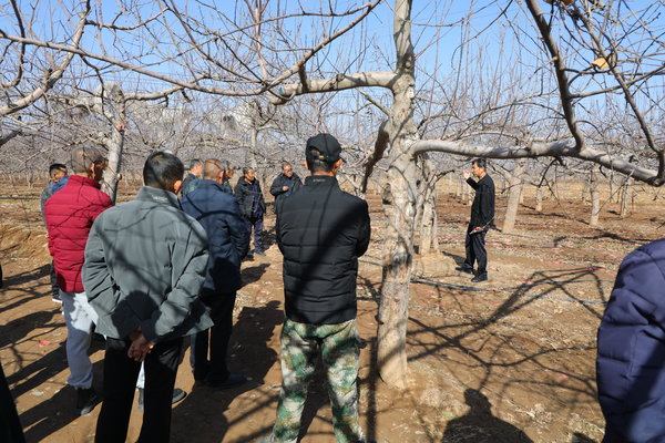 在彭镇赵塬村严塬组的活动现场,30余名周边果农围聚在果树旁,县果业发展中心高级农艺师王文围绕果树清园修剪、科学施肥、水分管理、倒春寒预防、病虫害防治五大核心环节,结合宜君县气候特点和苹果生长规律,进行了细致讲解和现场示范。从修剪枝条的角度力度到施肥的时机用量,再到倒春寒的应对措施,王文用通俗易懂的语言和直观的操作,让果农们听得懂、学得会、用得上。
