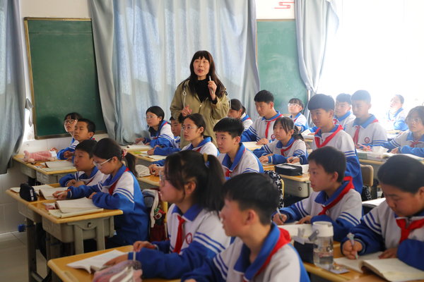 走进宜君县第一中学,校园里书声琅琅,处处洋溢着蓬勃向上的气息。七年级(6)班语文课堂上,杨培珍老师正带领学生学习课文《台阶》。她专注投入,引导学生品读文本、感悟情感,注重引导学生联系生活、体悟真情,将生活化教学理念融入每一个教学环节。她关注每一位学生的课堂状态,及时引导提醒,注重课堂实效与习惯培养,用既严谨又温暖的课堂氛围,让语文教学有深度、有温度。
