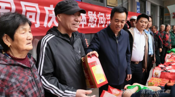 中秋、国庆双节将至,为传承红色基因、弘扬敬老爱老传统美德,9月23日,清涧县委社会工作部联合清涧县红旗沟粉条加工有限责任公司、清涧县九里山食业有限责任公司、清涧县西部粮仓农业发展有限责任公司三家爱心企业,在新城社区开展“月满中秋·家国同庆”节前慰问活动,为60名老党员和困难群众送上月饼、粉条、馒头等慰问物资。县委社会工作部部长、县委“两新”工委书记曹波出席活动并讲话。