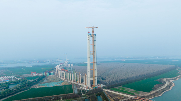 4月1日,中交路建承建的张靖皋长江大桥南航道桥北主塔主索鞍精准起吊,标志着这座世界最大跨度桥梁正式进入上部结构施工阶段,为工程后续推进奠定关键基础。