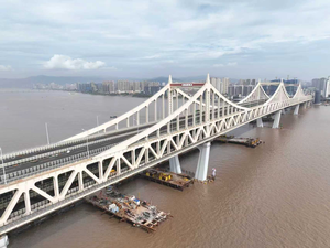 飞云江上“钢铁巨龙”迎来“终极体检”近日,由中交路建承建的国内最大跨度的公轨两用多塔刚性悬索桥——浙江永宁大桥完成桥梁荷载试验,为大桥通车奠定坚实基础。来源:智慧中国网