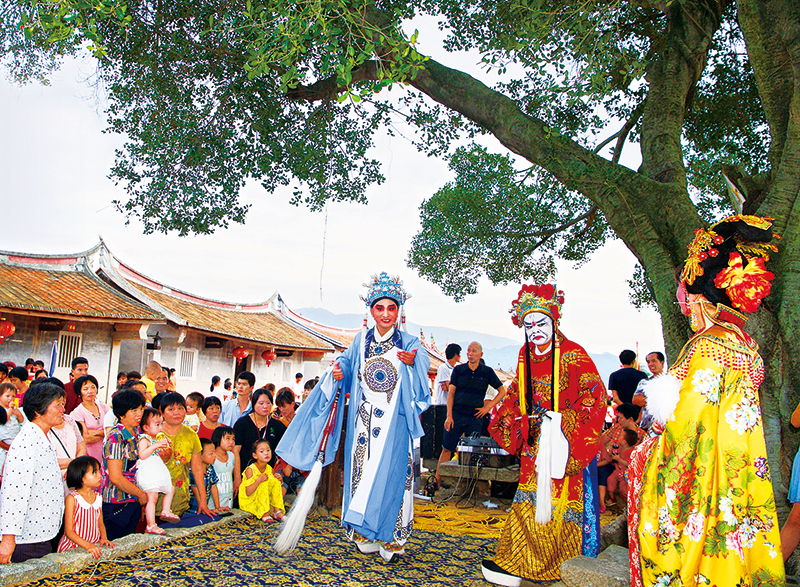 福建省龙海市东园镇埭美村是闽南红砖建筑文化的杰出代表,被称为“水上古村落”。近年来,当地大力实施乡村振兴战略,对环境进行整体改造提升,村容村貌焕然一新,乡村文化发展繁荣。图为2018年6月21日,一家芗剧团在埭美村榕树下表演传统芗剧《狸猫换太子》,吸引众多居民及游客。 新华社记者 姜克红/摄