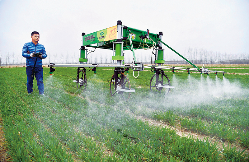 实施乡村振兴战略,必须破除人才瓶颈制约。记者在山东寿光、滕州、邹平等地看到,很多外出求学、打工、创业多年的年轻人,带着新的理念和技术回到农村,成为希望田野上的职业农民。图为2018年3月20日,邹平县明集镇年轻的职业农民在操作植保机器人喷施农药。 新华社记者 郭绪雷/摄