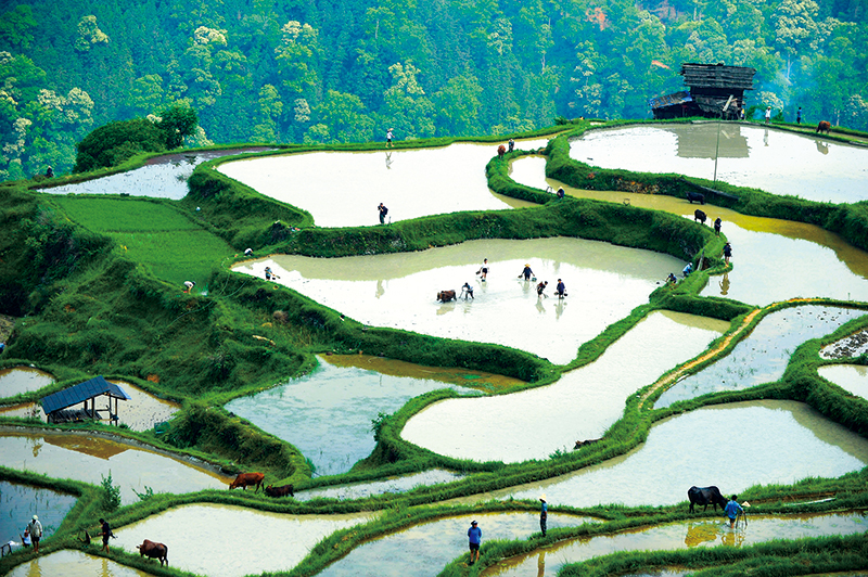 贵州省黎平县尚重镇洋洞村农耕文化保存完好。图为洋洞村村民在参加传统农耕展示活动。 新华社发 杨文斌/摄