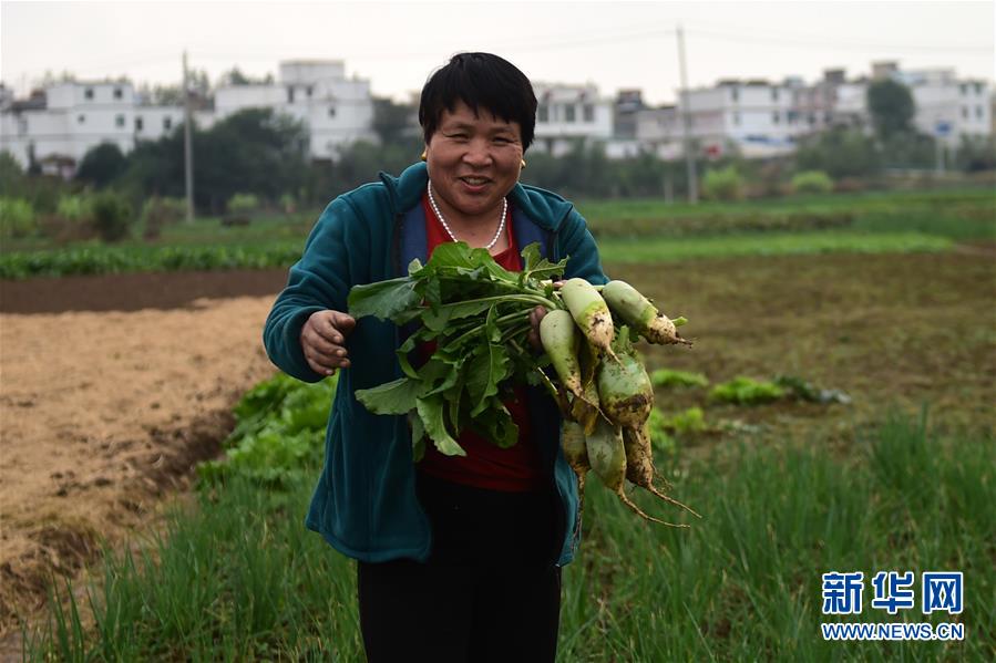 10月16日,安徽省阜南县王家坝镇李郢村村民展示刚收获的萝卜。新华社记者 周牧 摄