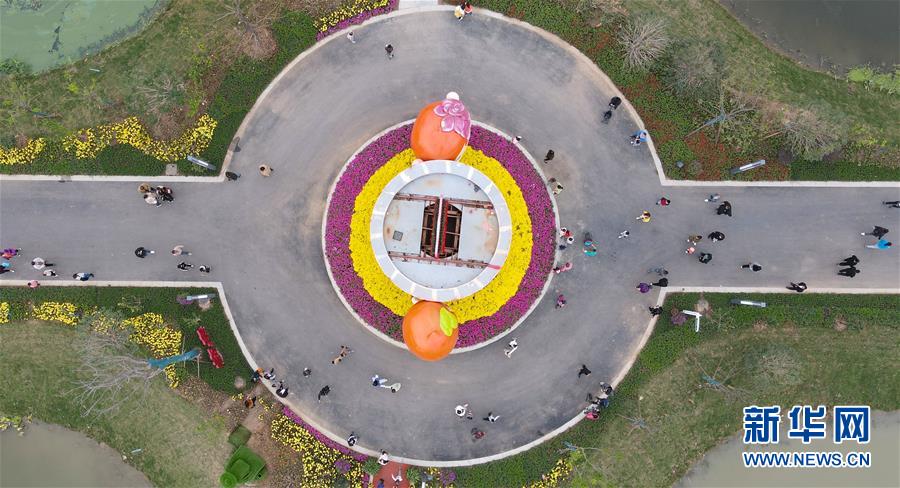 10月7日,游客在安徽省颍上县八里河旅游区游览(无人机照片)。新华社记者 周牧 摄