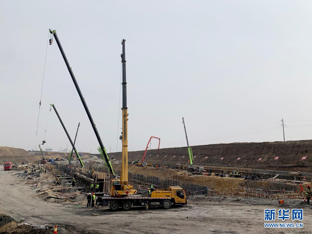 在内蒙古能源发电投资集团锡林郭勒胜利矿业有限公司胜利西三露天煤矿,十多台吊车抓紧建设地面生产系统。该套生产系统预计投资1.42亿元,建成后煤炭将用皮带封闭传送,避免粉尘等污染(4月1日摄)。新华社记者 魏婧宇 摄