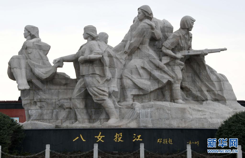 位于黑龙江省牡丹江市江滨公园的“八女投江”群雕(2018年10月26日摄)。新华社记者 王建威 摄