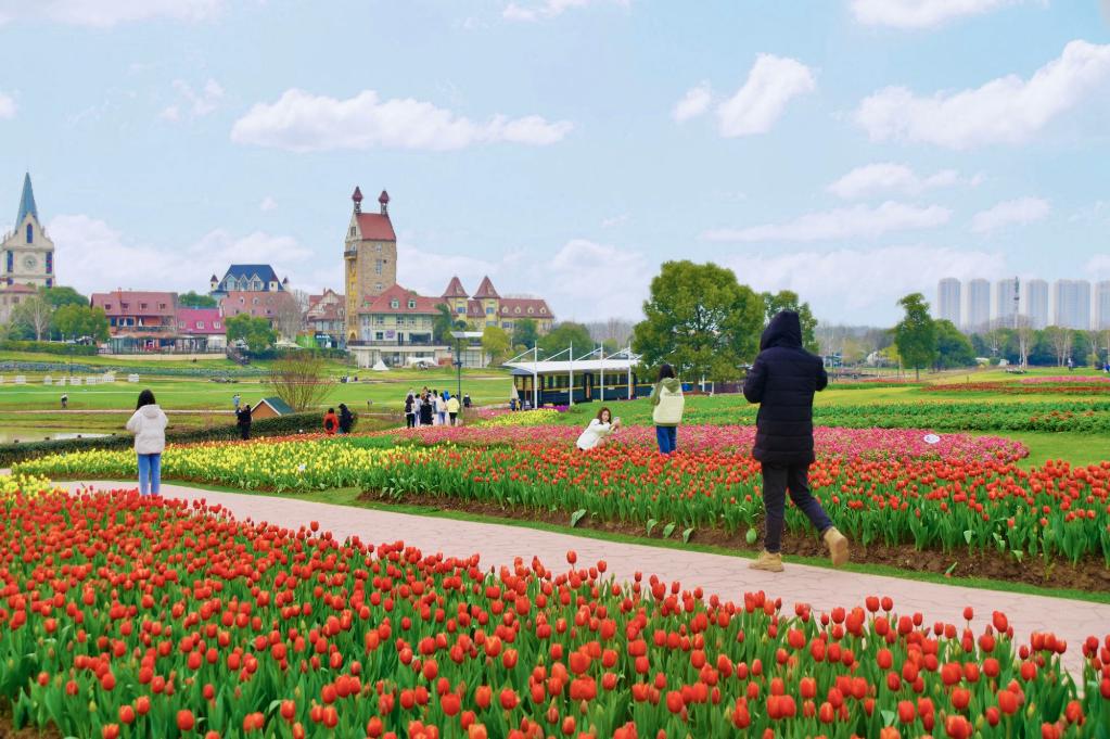 2月,武汉花博汇景区30万株郁金香、紫罗兰等花卉绽放。新华社记者喻珮 摄