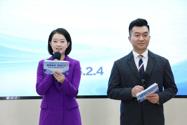 江苏省广播电视总台健康广播主持人正坤(右)、江苏省社会办医疗机构协会新媒体主播徐晓帆主持开播仪式