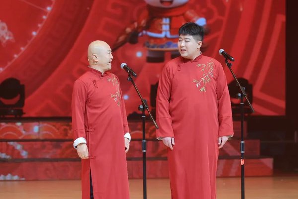 此外,晚会还呈现了丰富多样的曲艺与特色节目,吴堡本土原创相声《最亲是乡音》道出游子对家乡的深深眷恋与情感共鸣,陕北说书音乐快板《黄河潮起吴堡春》集中呈现了吴堡五年来的发展实绩与喜人变化。《看妹妹走一回》《经典老歌新唱》《哥哥的亲圪蛋》《踮起脚尖尖瞭远方》《亲亲信天游》《我的枣妹子》等歌曲联唱,以朴实嗓音唱响陕北民歌与原创新曲。扬剧彩唱《新春观灯》、黄梅戏《女驸马》、秦腔《金榜题名》、晋剧《大登殿》等经典选段,以字正腔圆的表演彰显传统艺术的永恒魅力。小品《一把挂面不零卖》将吴堡特产融入剧情,在幽默中尽显乡土温情,杂技《相守》则以高难度技艺与默契配合,诠释陪伴与坚守的深刻内涵。歌舞《盛世花开》以绚烂光影与优美舞姿绘就国泰民安盛景,为现场观众献上一场视听盛宴。